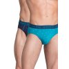 V balení se nachází tyrkysové a tmavě modré pánské slipy ušité z bavlny (95 %) a elastanu (5 %).
