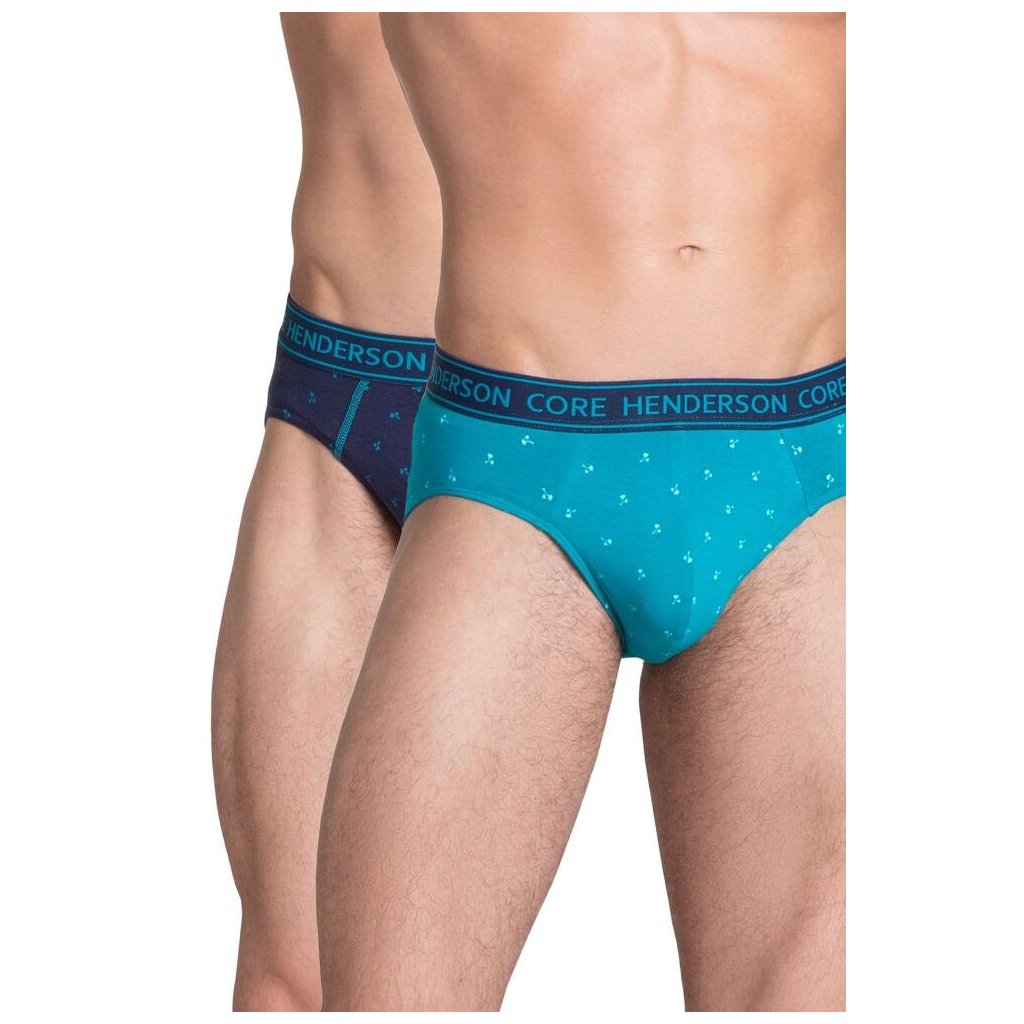 V balení se nachází tyrkysové a tmavě modré pánské slipy ušité z bavlny (95 %) a elastanu (5 %).