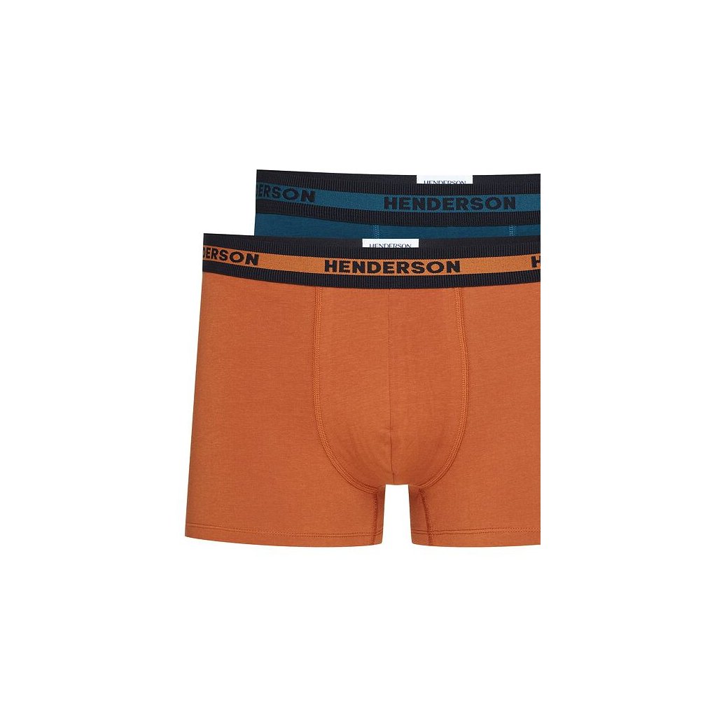Boxerky Jag jsou balené po 2 kusech a mají cihlově hnědou a tmavě zelenou barvu.