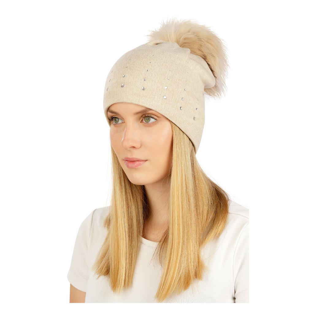 Pletenina. Uvnitř fleecová podšívka. Bambule z imitace kožešiny. Kamínky Swarowski. 50% Bavlna + 50% Akryl podšívka 100% Polyester Fleece béžová UNIDoplňkové parametry