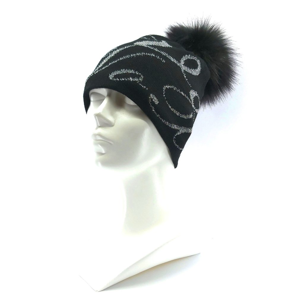 Čepice dámská pletená CAMPO s lurexem a bambulí ČERNÁ