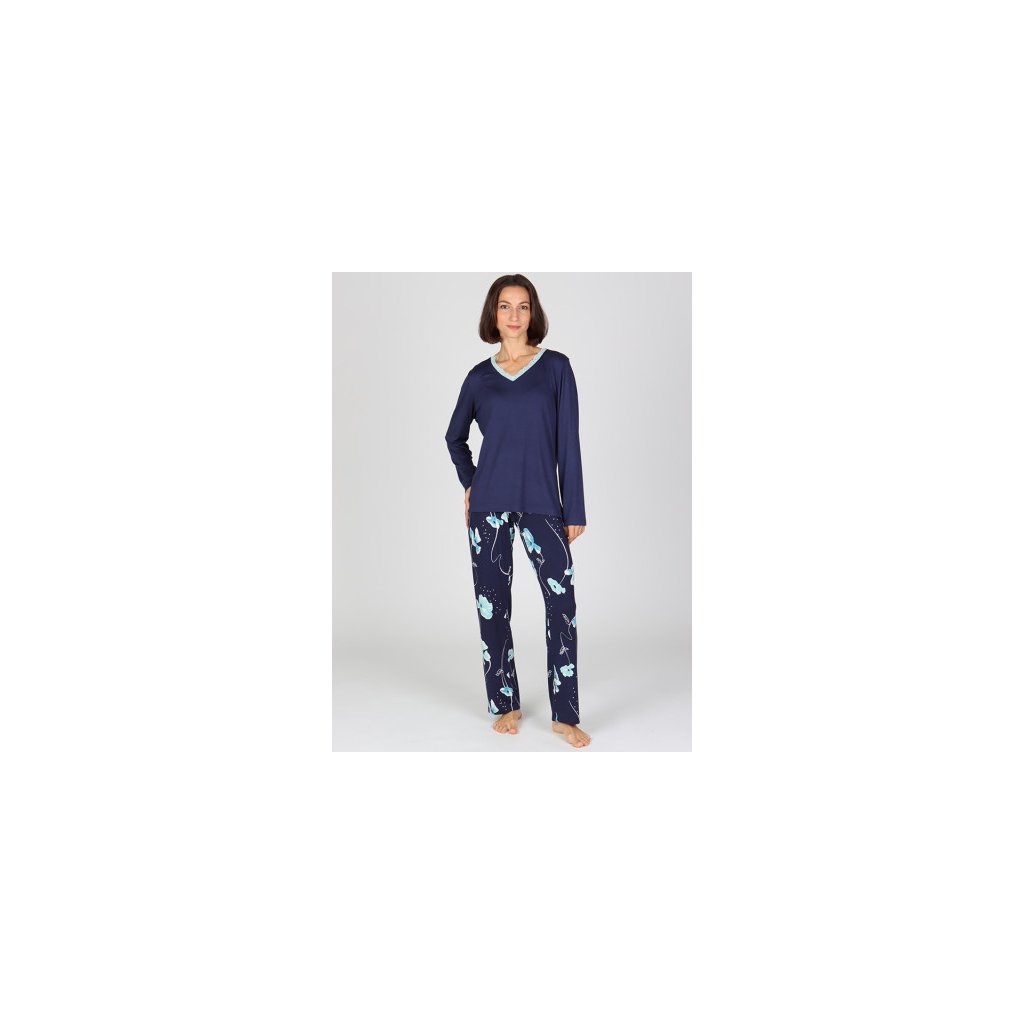 Spodní díl tvoří dlouhé pyžamové kalhoty s potiskem květů, které perfektně ladí s horním dílem a poskytují maximální pohodlí při spánku i odpočinku doma. Tento model je ideální volbou pro každou ženu, která si potrpí na kvalitu, styl a pohodlí.