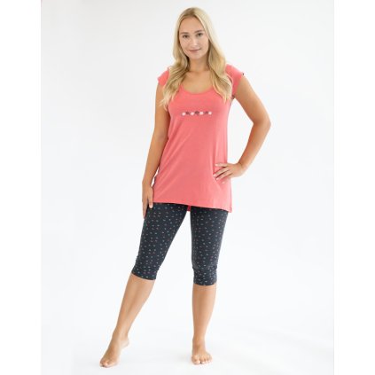 GINA dámské pyžamo 3/4 dámské, 3/4 kalhoty, šité, s potiskem Pyžama 2024 19154P - tomato tm. šedá L