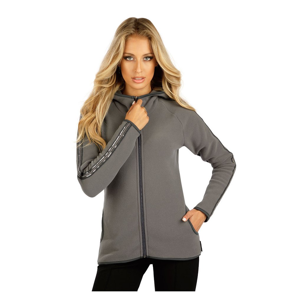 Kapuce a zapínání na zip. Praktické boční kapsy. Ozdobná třpytivá aplikace na rukávu. Efektivní pružné lemování. Rychleschnoucí materiál s výbornými termoizolačními vlastnostmi, který nestárne a nežmolkuje. Pružnost oběma směry zaručuje dokonalou volnost pohybu. Vhodný jako druhá vrstva oblečení. Fleece velmi vysoké kvality. 95% Polyester Fleece + 5% Elastan 117 tmavě šedá S, M, L, XLDoplňkové parametry