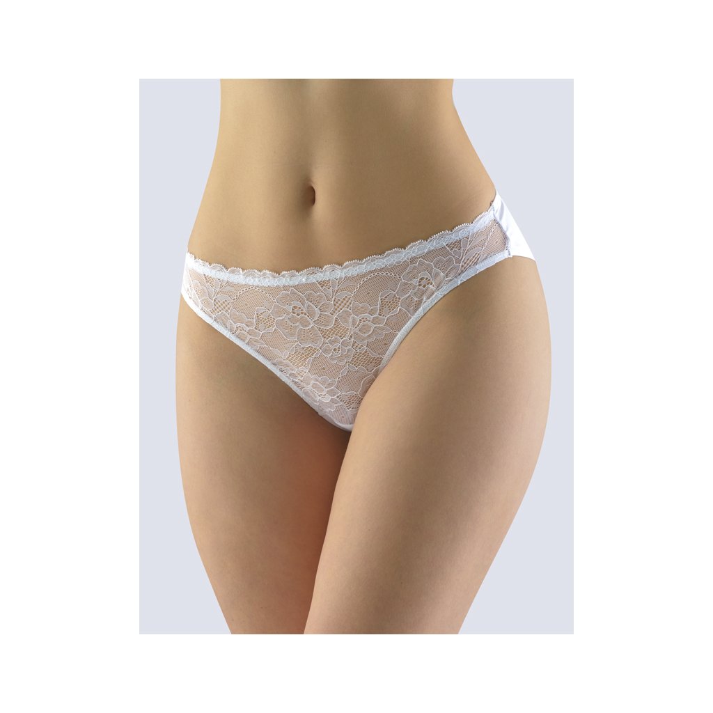 kalhotky bokové - brazilky, šité, s krajkou, jednobarevné značky GINA, kód 16102. Barva: bílá , Velikost: 34/36, Složení: 90% Polyamid 10% ElastanBokové kalhotky s užším bokem, brazilky, dámské šité prádlo. V pasovém kraji je našitá pruženka s ozdobným krajem. V nohavičkách je zašitá úzká pruženka. Přední díl je krajkový. Kalhotky jsou jednobarevné.Materiál je vyroben z polyamidového vlákna, které je doplněno elastanem. Elastan přidává materiálu pružnost a zlepšuje jeho tvarovou stálost. Materiál se vyznačuje velmi dobrou odolností a trvanlivostí barev.Luxusní dámská krajková kolekce La Femme přináší moderní i tradiční střihy kalhotek s krajkou, které lze kombinovat s podprsenkami v obdobných barvách.. Kolekce: La Femme 2