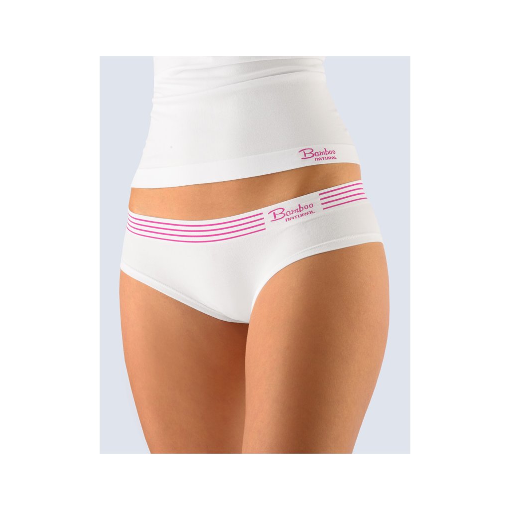 GINA dámské kalhotky francouzské, bezešvé, bokové Bamboo Natural 04024P - bílá purpurová L/XL