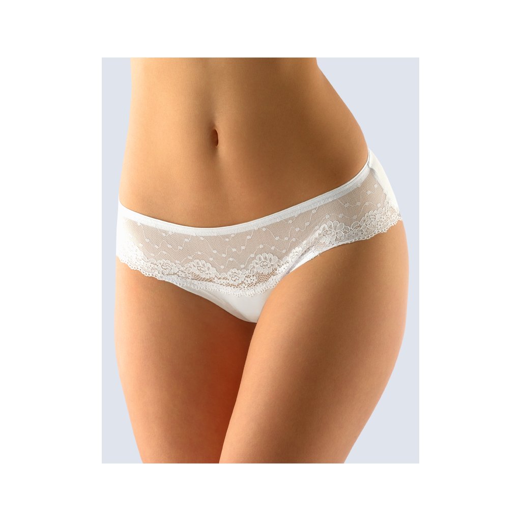 GINA dámské kalhotky francouzské, šité, bokové, s krajkou, jednobarevné Delicate 14104P - bílá 34/36