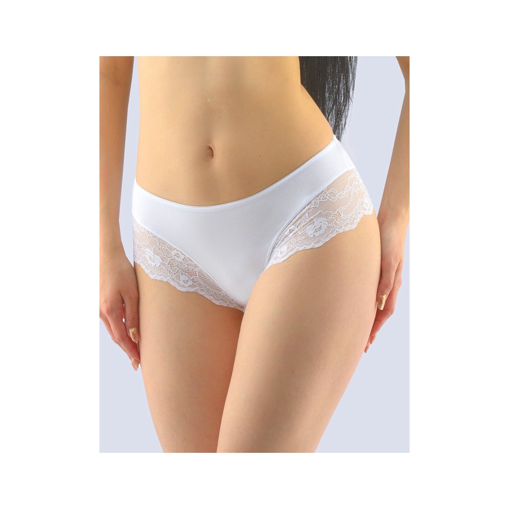 GINA dámské kalhotky francouzské, šité, bokové, s krajkou, jednobarevné Sensuality 14142P - bílá 34/36