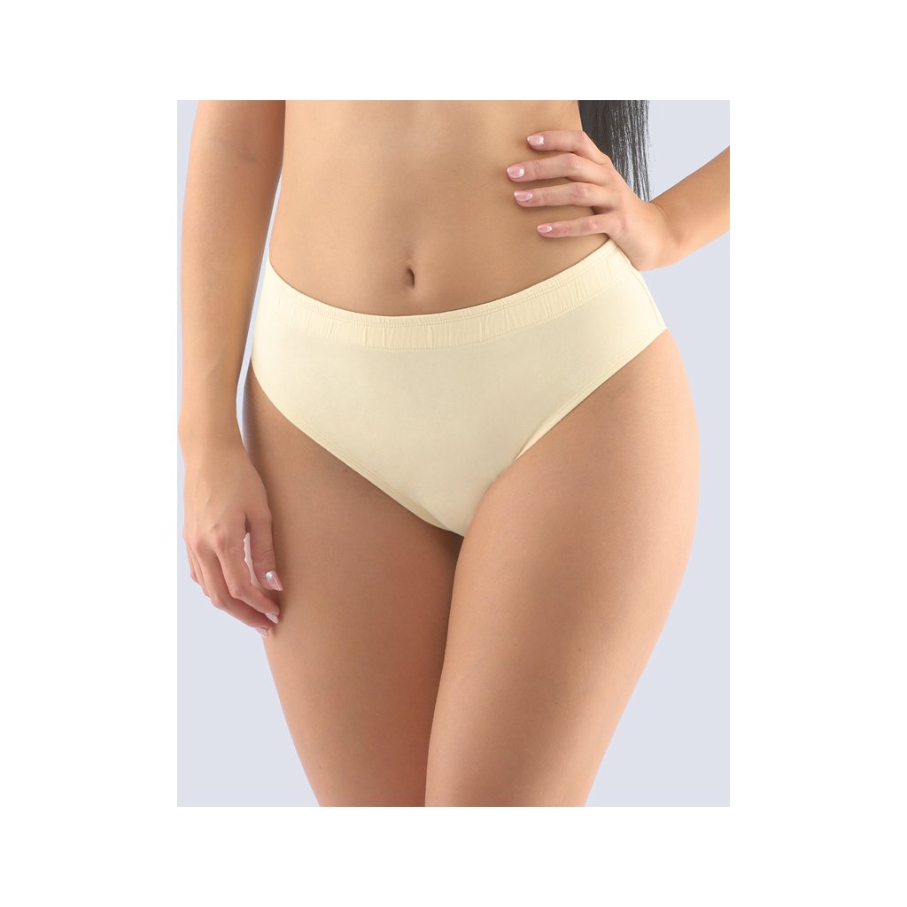 kalhotky klasické širší pasová guma, širší bok, šité, jednobarevné značky GINA, kód 10285. Barva: žlutobílá , Velikost: 42/44, Složení: 92% Bavlna 8% ElastanKalhotky klasického střihu, dámské šité prádlo. V pasovém kraji je zašitá širší pruženka. V nohavičkách je zašitá úzká pruženka. Kalhotky jsou jednobarevné.Materiál je vyroben z bavlny, která je doplněna elastanem. Úplet je vhodný pro všechny, kteří hledají přírodní materiály. Elastan přidává materiálu pružnost a zlepšuje jeho tvarovou stálost. Prádlo z tohoto materiálu je vhodné pro každodenní nošení..Doplňkové parametry