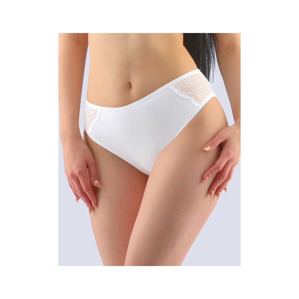 GINA dámské kalhotky klasické, širší bok, šité, s krajkou, jednobarevné 10154P - bílá 46/48
