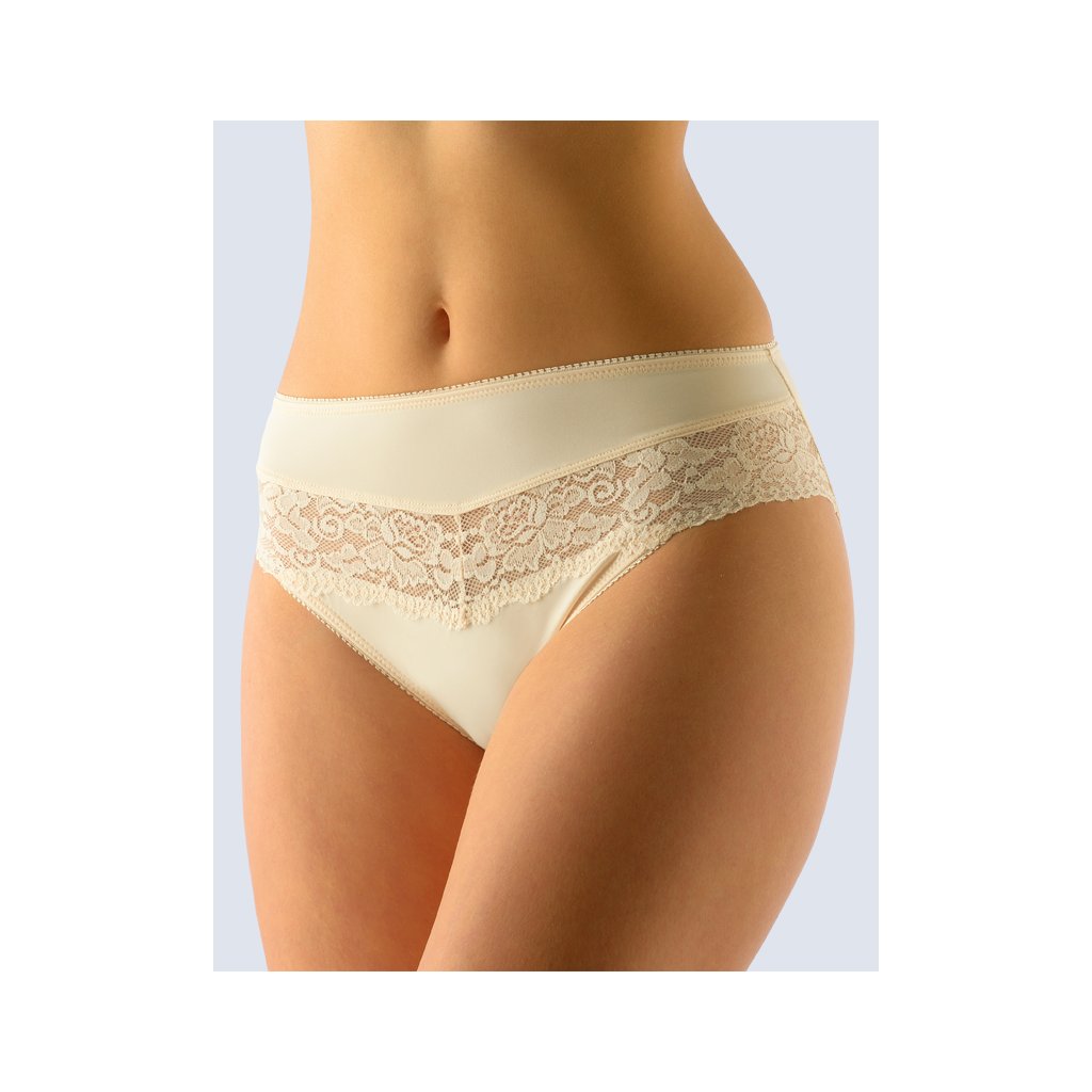 GINA dámské kalhotky klasické, širší bok, šité, s krajkou, jednobarevné La Femme 10121P - písková 34/36