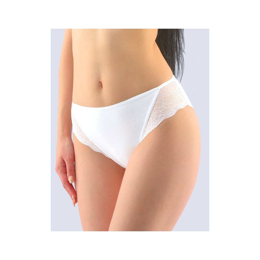 GINA dámské kalhotky klasické s úzkým bokem, úzký bok, šité, s krajkou, jednobarevné Delicate 10190P - bílá 38/40