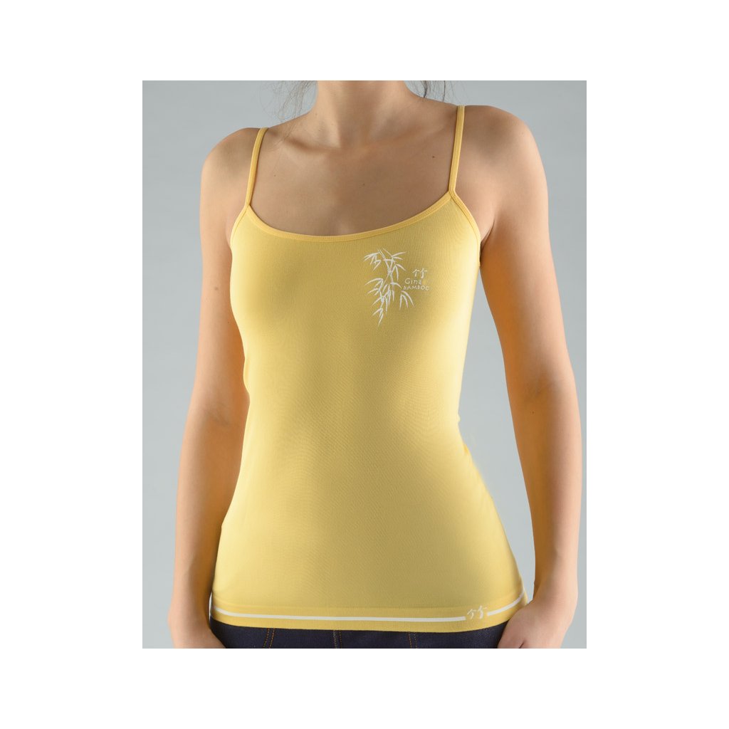 košilka, úzká ramínka, bezešvé, s potiskem značky GINA, kód 08989. Barva: ocelová bílá, Velikost: M/L, Složení: 60% Viskóza ( Bambus ) 25% Bavlna 5% Polyamid 10% ElastanKošilka s úzkými ramínky, dámské bezešvé prádlo. Dolní kraj je zapravený bezešvým způsobem. Průramky a průkrčník jsou začištěny lemovacími proužky, které přechází do ramínek. Košilka je jednobarevná. V záložce je vypletený barevný proužek a logo. Na předním díle je solitér.Materiál je vyroben z bambusového vlákna, které je doplněno bavlnou a elastanem. Úplet je velmi jemný a příjemný na nošení. Do každodenního prádla přináší luxusní hedvábný vzhled. Bavlna dává materiál měkčí a plnější omak.Kolekce Bamboo se vyznačuje příjemným materiálem, který je směsí bavlněného a bambusového vlákna. Dámská část kolekce je charakteristická svou jednoduchostí a množstvím trendových barevných kombinací, které se pravidelně doplňují. Všechny výrobky v této kolekci mají velmi dobrou pružnost záložek a krajů.. Kolekce: Bamboo Cotton