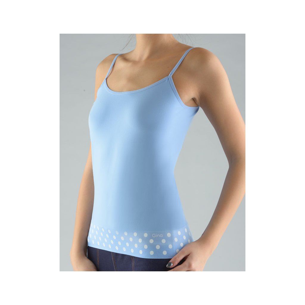GINA dámské košilka, úzká ramínka, bezešvé, s potiskem Širší lem s puntíky 08991P - pomnenková bílá S/M
