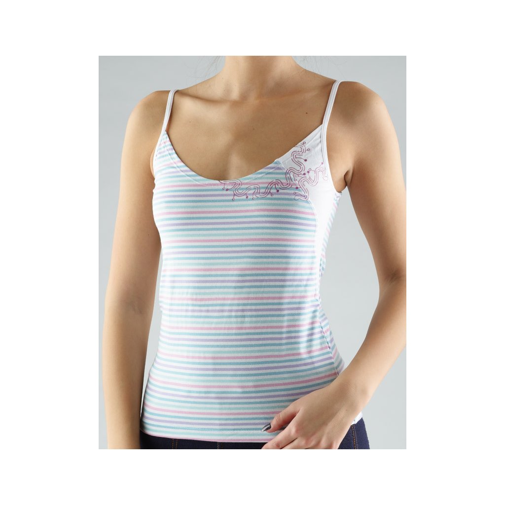 košilka, úzká ramínka, šité, s potiskem značky GINA, kód 18017. Barva: bílá magnolie, Velikost: 34/36, Složení: 90% Bavlna 10% ElastanKošilka s úzkými ramínky, dámské šité prádlo. Průramky jsou začištěny lemovacími proužky, které přechází do ramínek. Košilka má vypletené proužky. Na předním díle je členěná vsadkou a doplněná solitérem.Materiál je vyroben z bavlny, která je doplněna elastanem. Úplet je vhodný pro všechny, kteří hledají přírodní materiály. Elastan přidává materiálu pružnost a zlepšuje jeho tvarovou stálost. Prádlo z tohoto materiálu je vhodné pro každodenní nošení.. Kolekce: Summer timeDoplňkové parametry