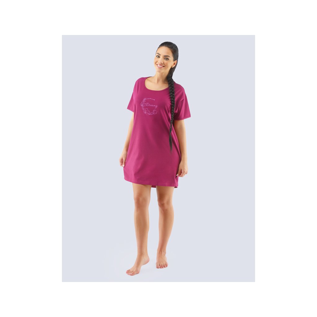 GINA dámské maxitriko dámské krátký rukáv, šité, s potiskem Pyžama 2021 19120P - cola hvozdíková M