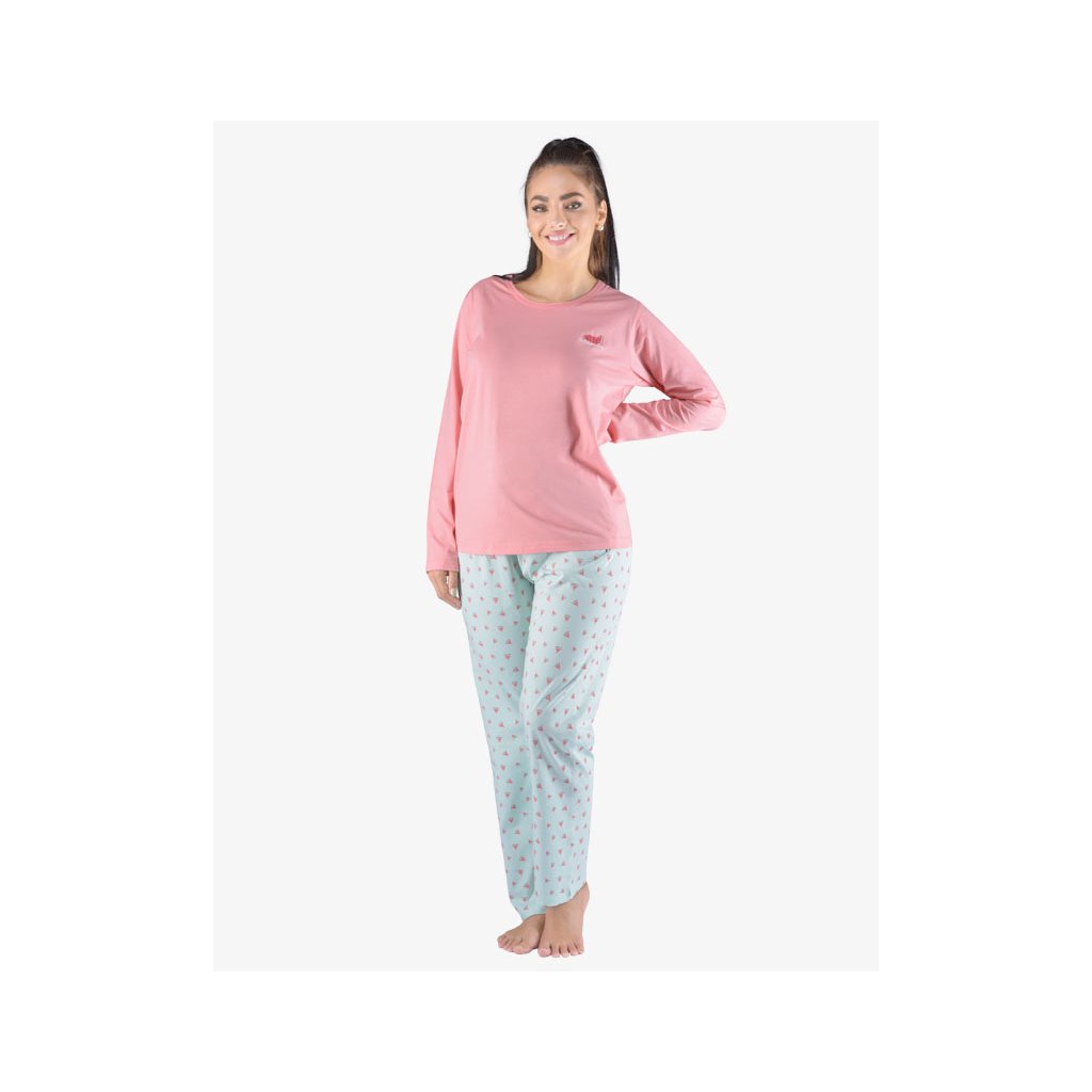 GINA dámské pyžamo dlouhé dámské, šité, s potiskem Pyžama 2023 19151P - starorůžová peprmint M