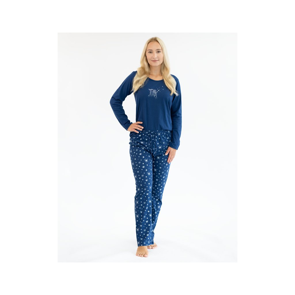 GINA dámské pyžamo dlouhé dámské, šité, s potiskem Pyžama 2024 19161P - tm. modrá bílá L