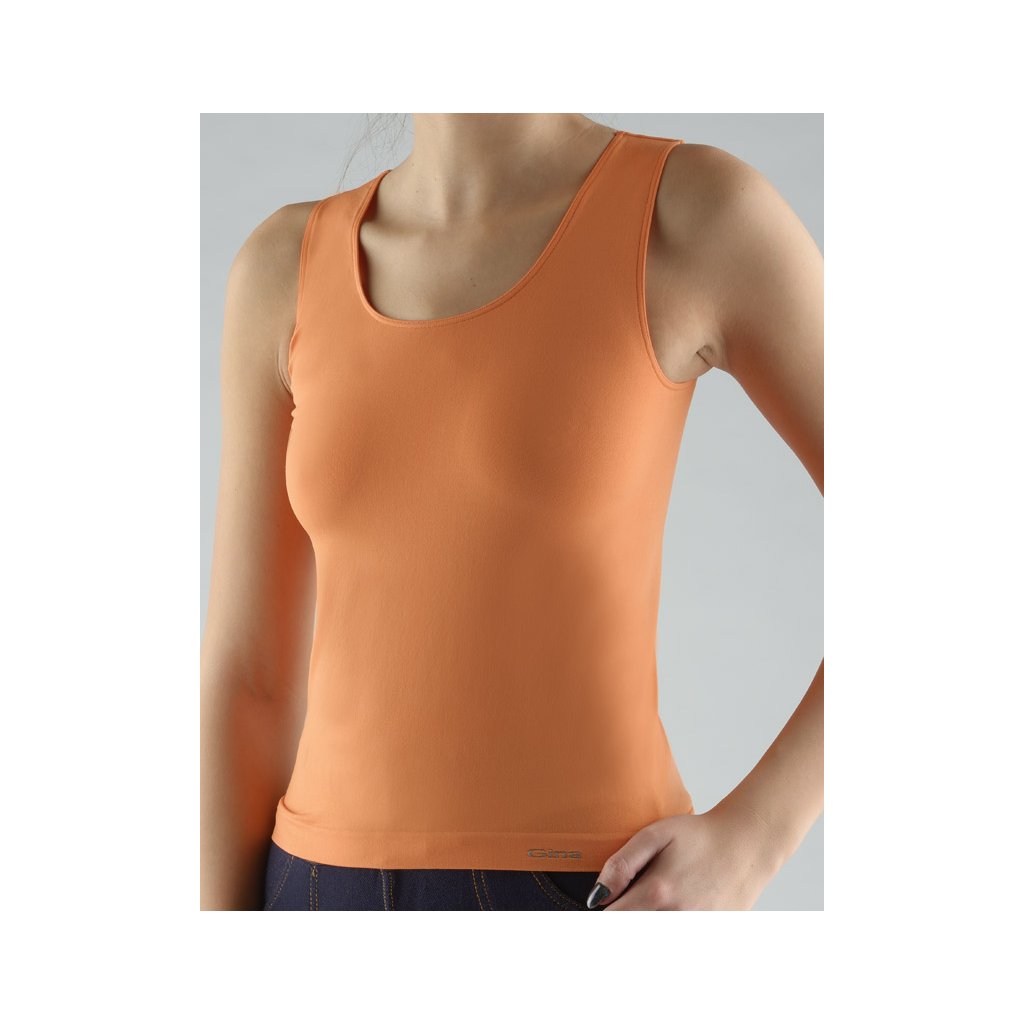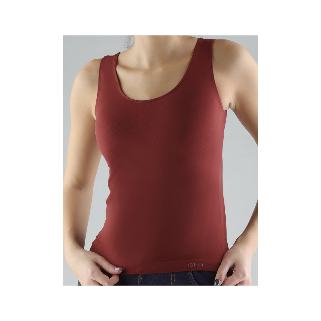 GINA dámské tílko, širší ramínka, bezešvé, jednobarevné MicroPolyamid 08008P - tm. hnědá S/M