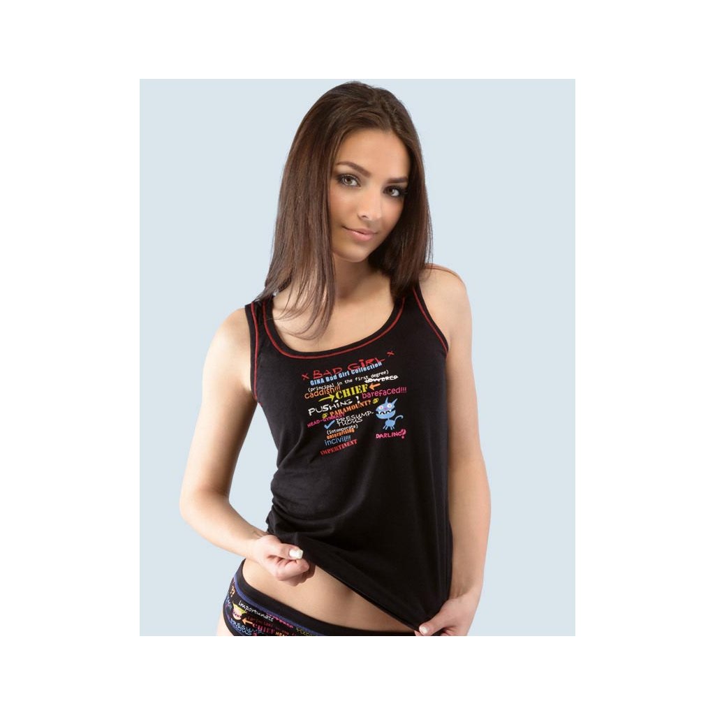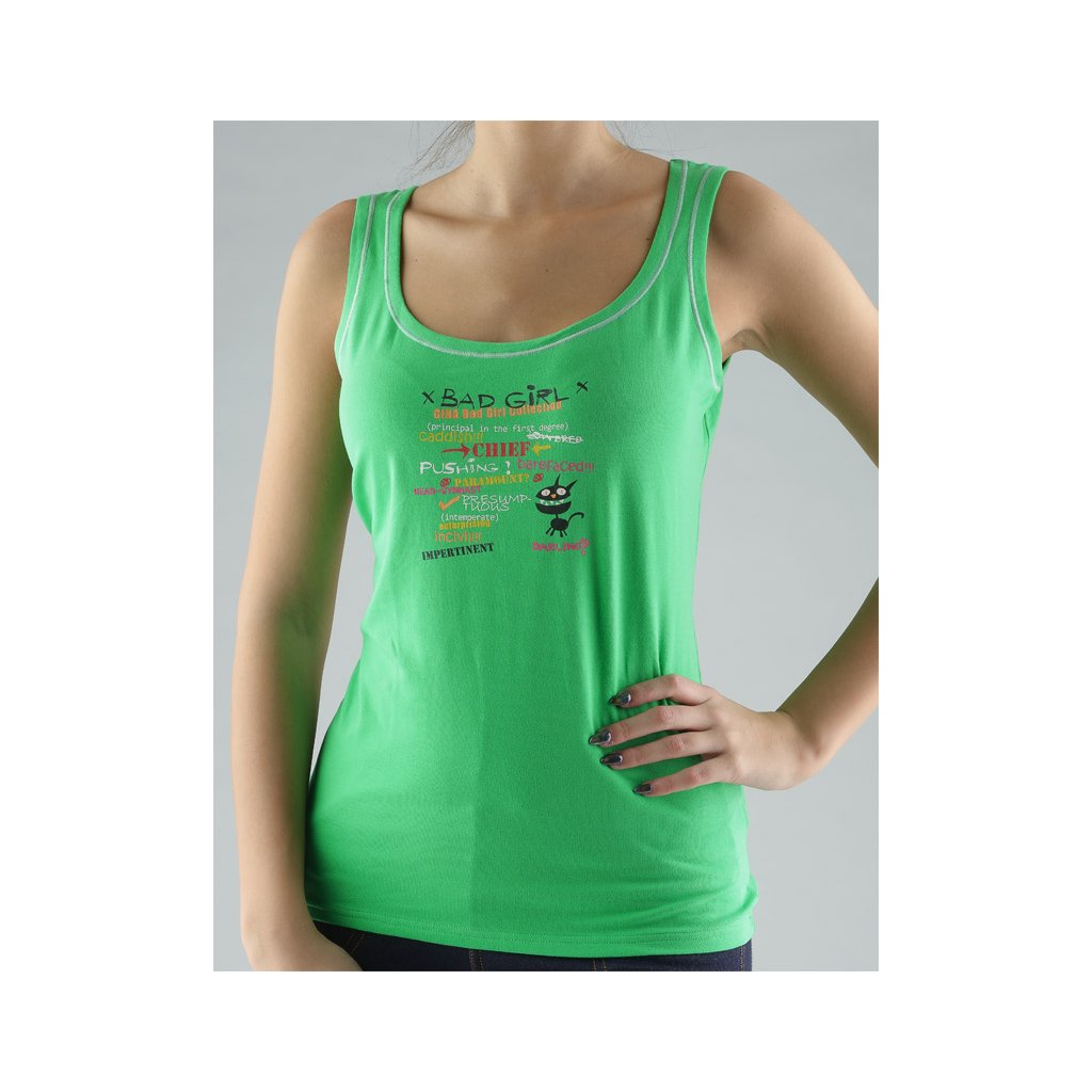 GINA dámské tílko, širší ramínka, šité, s potiskem Bad Girl 18033P - brokolice 38/40