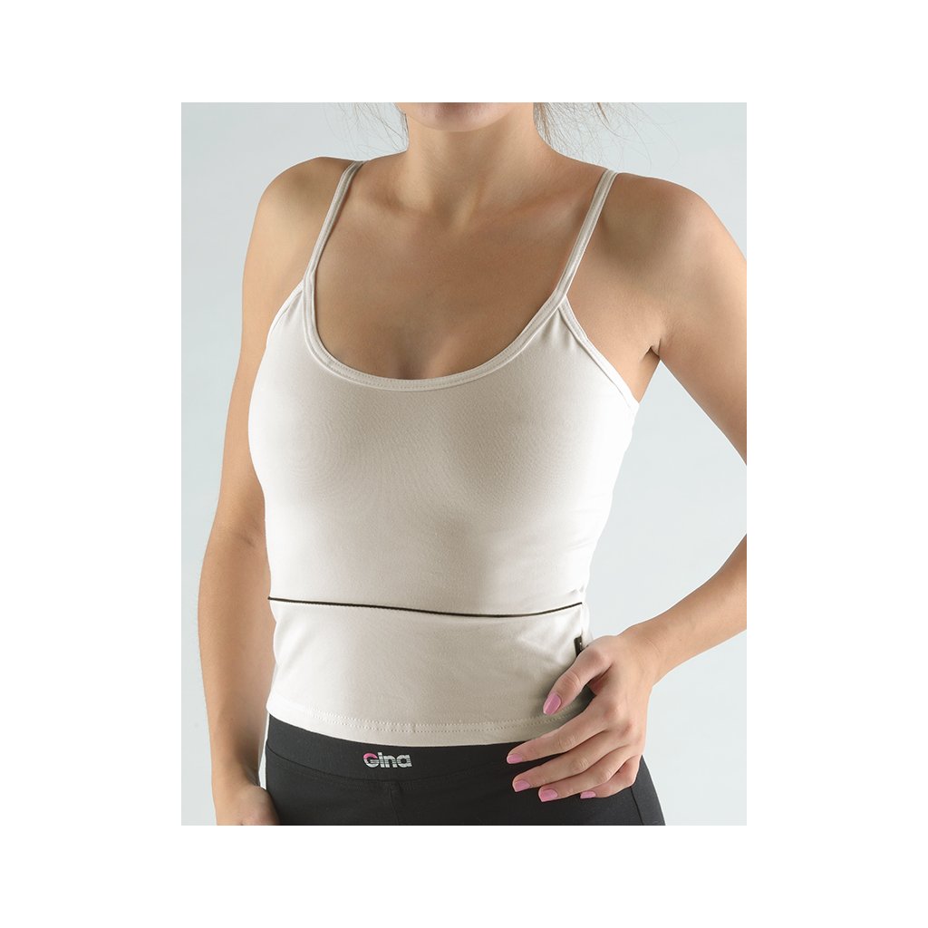 tílko, širší ramínka, šité značky GINA, kód 98001. Barva: melta bílá, Velikost: M, Složení: 90% Bavlna 10% Elastan ( Lycra )Košilka do pasu s úzkými ramínky, dámské šité sportovní prádlo. Průramky a průkrčník jsou začištěny lemovacími proužky, které přechází do ramínek. Přední díl je členěný pod prsy. Košilka je jednobarevná s kontrastní paspulí v členícím švu. V bočním kraji je všité logo.Materiál je vyroben z bavlny, která je doplněna Lycrou. Úplet je vhodný pro všechny, kteří hledají přírodní materiály. Lycra přidává materiálu pružnost a zlepšuje jeho tvarovou stálost. Prádlo z tohoto materiálu je vhodné pro každodenní nošení..Doplňkové parametry