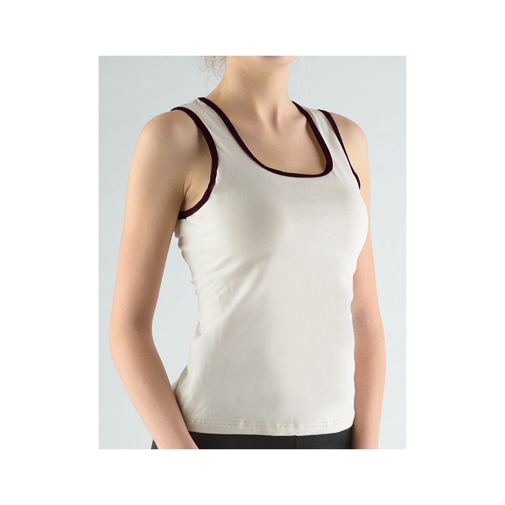 tílko, širší ramínka, šité značky GINA, kód 98027. Barva: lékořice písková, Velikost: M, Složení: 90% Bavlna 10% Elastan ( Lycra )Tílko do pasu se širšími ramínky, dámské šité sportovní prádlo. Průramky a průkrčník jsou začištěny lemovacími proužky. Tílko je jednobarevné s kontrastním lemováním. V bočním kraji je všité logo.Materiál je vyroben z bavlny, která je doplněna Lycrou. Úplet je vhodný pro všechny, kteří hledají přírodní materiály. Lycra přidává materiálu pružnost a zlepšuje jeho tvarovou stálost. Prádlo z tohoto materiálu je vhodné pro každodenní nošení..Doplňkové parametry