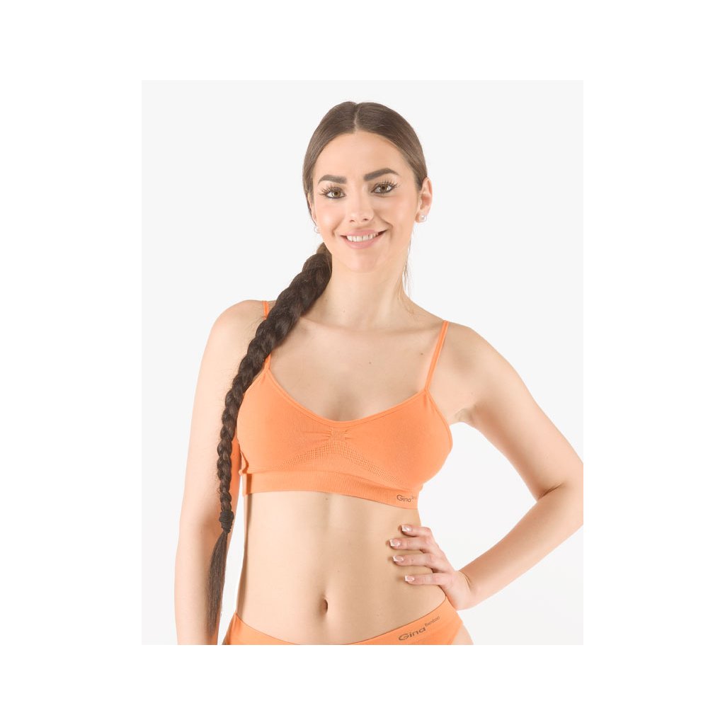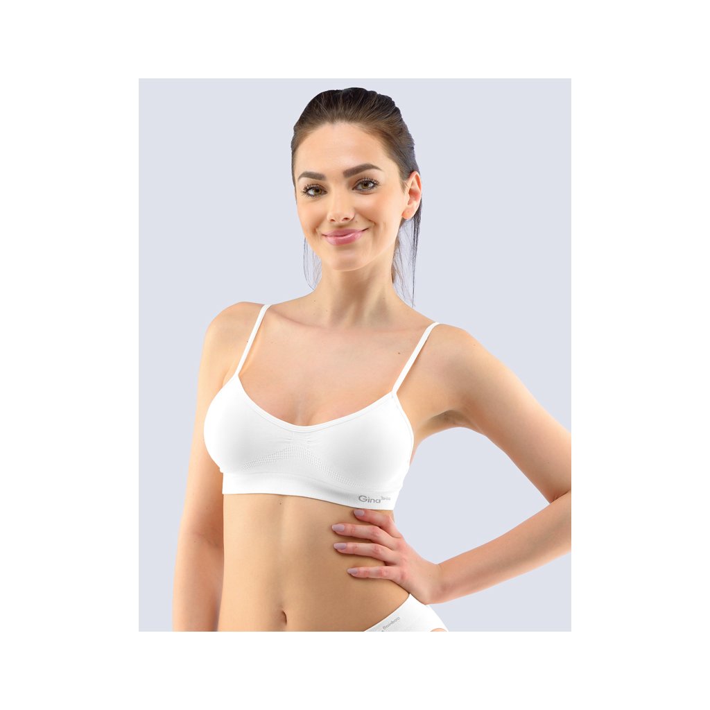 top podprsenkový s úzkými ramínky, úzká ramínka, bezešvé, jednobarevné značky GINA, kód 07010. Barva: tělová , Velikost: L/XL, Složení: 70% Viskóza ( Bambus ) 22% Polyamid 8% ElastanPodprsenkový top s úzkými ramínky, dámské bezešvé prádlo. Dolní kraj je zesílený a zapravený bezešvým způsobem. Průramky a průkrčník jsou začištěny lemovacími proužky, které přechází do ramínek. Top je jednobarevný. V záložce je vypletené logo v šedé barvě.Materiál je vyroben z bambusového vlákna, které je doplněno elastanem. Úplet je velmi jemný a příjemný na nošení. Do každodenního prádla přináší luxusní hedvábný vzhled.Kolekce Bamboo Pure Line se vyznačuje tím, že použitý materiál má vyšší gramáž a vzhledem ke svému složení se vyznačuje výbornou tvarovou stálostí a odolností.. Kolekce: Bamboo PureLine