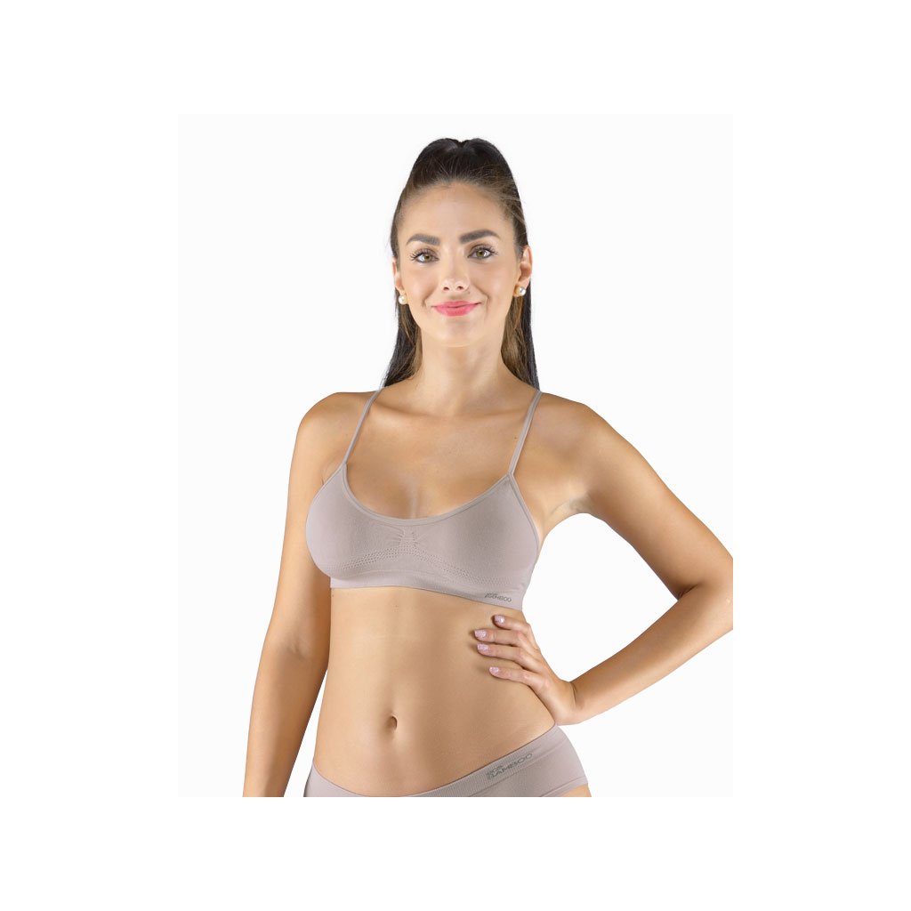 GINA dámské top podprsenkový s úzkými ramínky, úzká ramínka, bezešvé, jednobarevné Eco Bamboo 07015P - béžová L/XL
