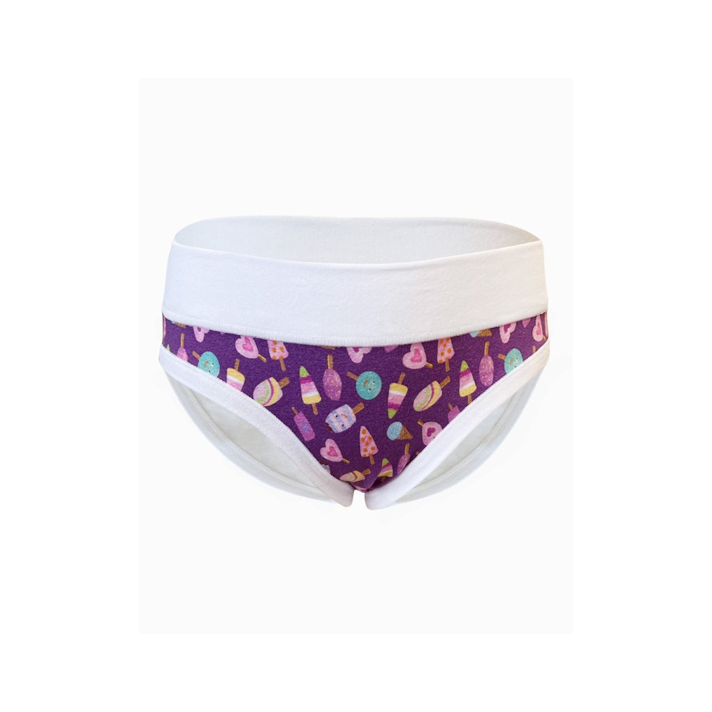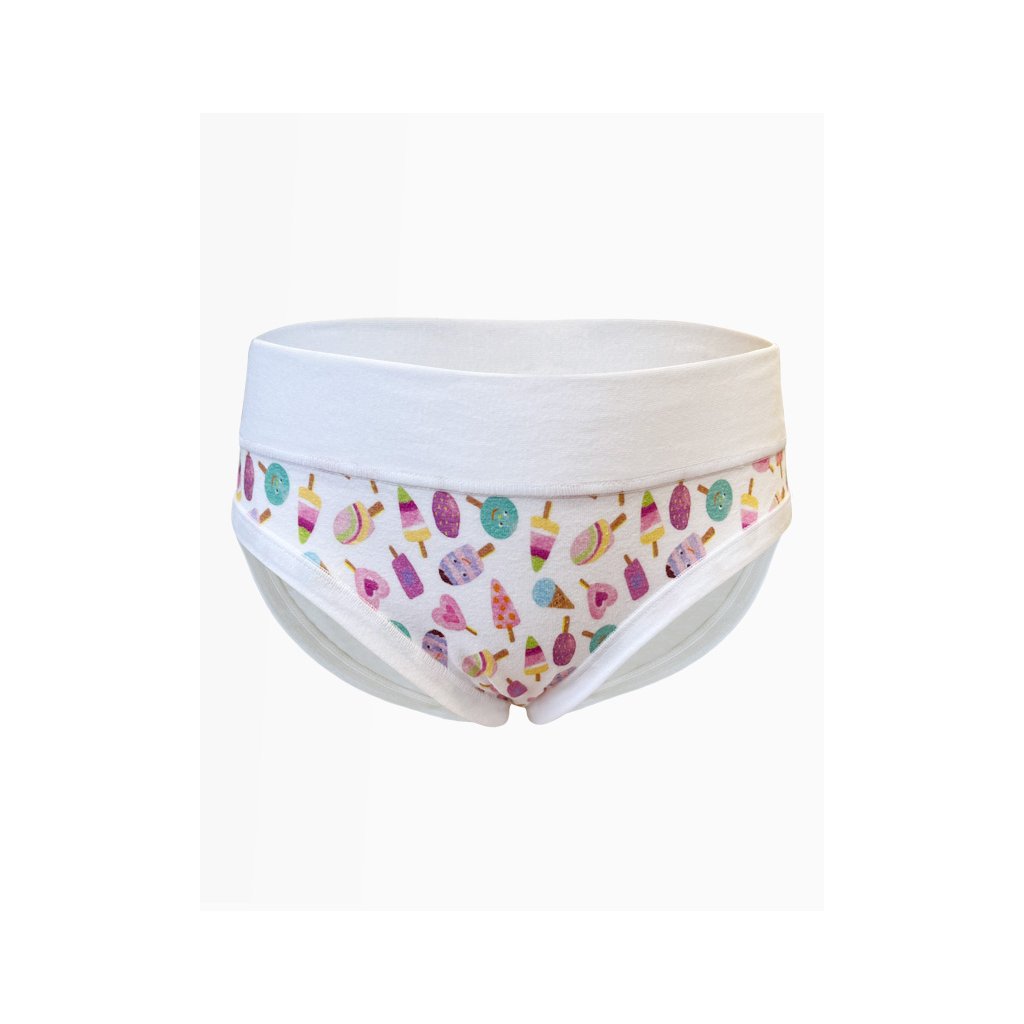kalhotky klasické dívčí, úzký bok, šité, s potiskem značky GINA, kód 20026. Barva: levandulová bílá, Velikost: 116/122, Složení: 92% Bavlna 8% ElastanKalhotky dívčí klasického střihu mají širší pasový lem. Nohavičky jsou začištěné úzkým lemem ze stejného materiálu. Přední díl zdobí potisk s motivem nanuků. Zadní díl a lemy jsou jednobarevné.Materiál je vyroben z bavlny, která je doplněna elastanem. Úplet je vhodný pro všechny, kteří hledají přírodní materiály. Elastan přidává materiálu pružnost a zlepšuje jeho tvarovou stálost. Prádlo z tohoto materiálu je vhodné pro každodenní nošení.Kolekce Disco přináší svěží barvy do dívčího šatníku.. Kolekce: Disco XIXDoplňkové parametry