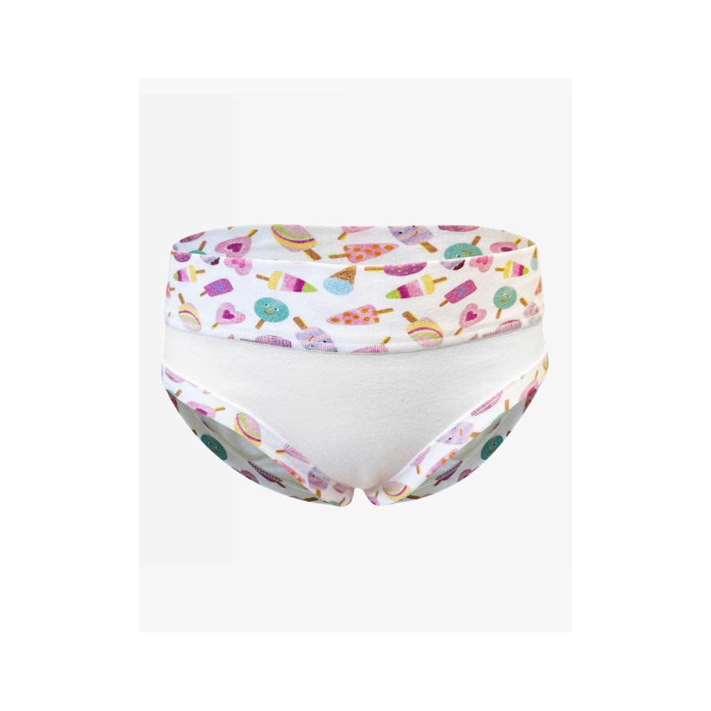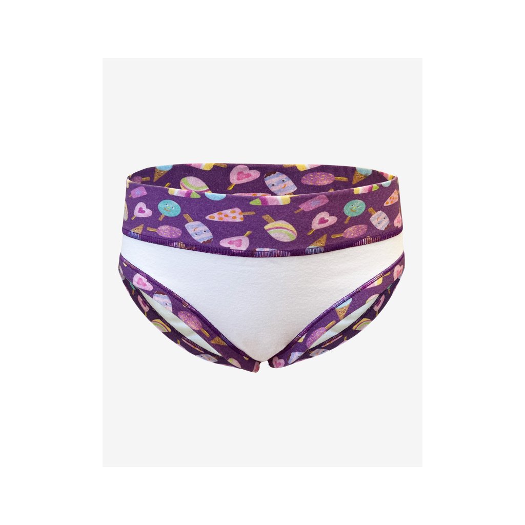 kalhotky klasické dívčí, úzký bok, šité, s potiskem značky GINA, kód 20027. Barva: levandulová bílá, Velikost: 116/122, Složení: 92% Bavlna 8% ElastanKalhotky dívčí klasického střihu mají širší pasový lem. Nohavičky jsou začištěné úzkým lemem ze stejného materiálu. Lemy v pase a v nohavičkách zdobí potisk s motivem nanuků. Přední a zadní díl jsou jednobarevné.Materiál je vyroben z bavlny, která je doplněna elastanem. Úplet je vhodný pro všechny, kteří hledají přírodní materiály. Elastan přidává materiálu pružnost a zlepšuje jeho tvarovou stálost. Prádlo z tohoto materiálu je vhodné pro každodenní nošení.Kolekce Disco přináší svěží barvy do dívčího šatníku.. Kolekce: Disco XIX