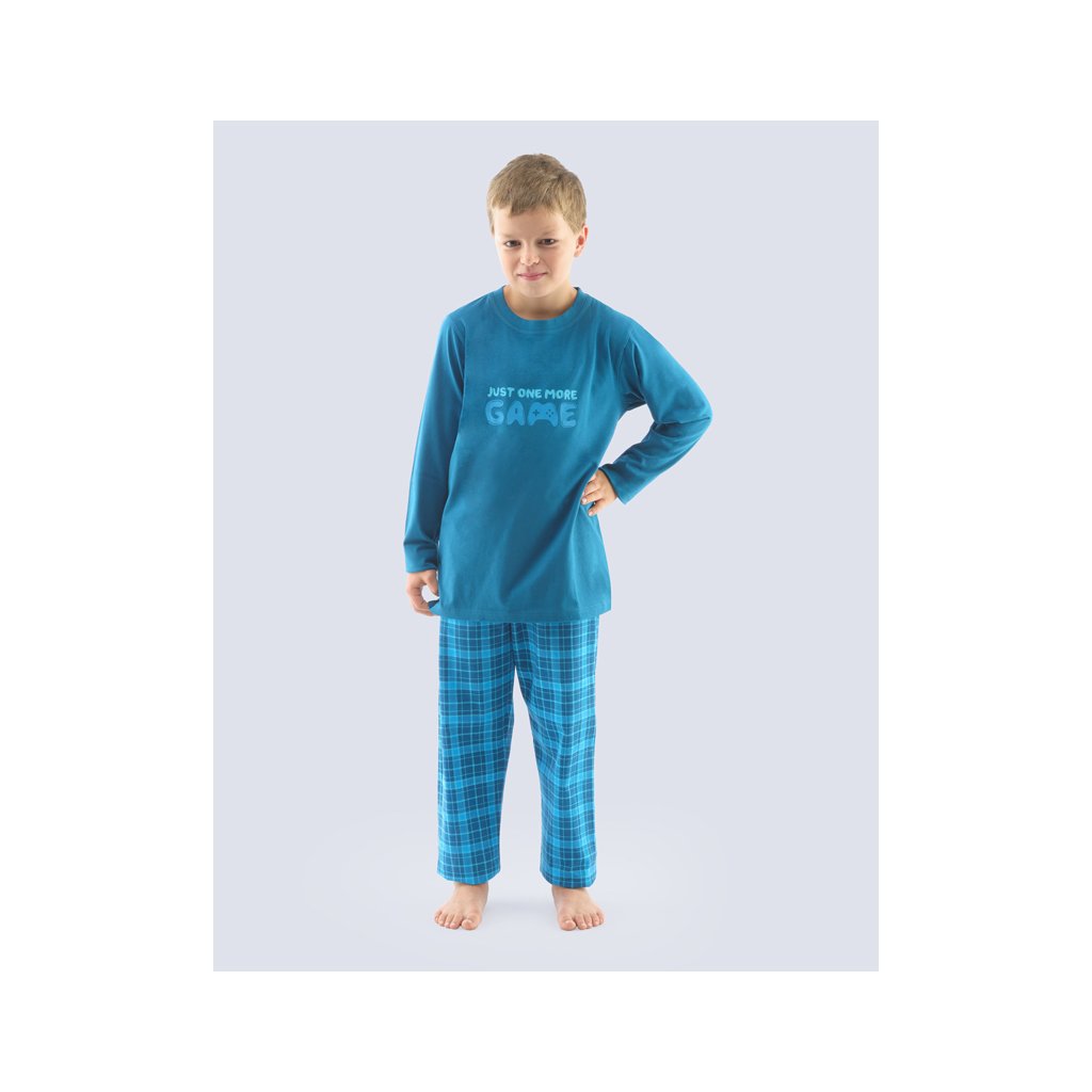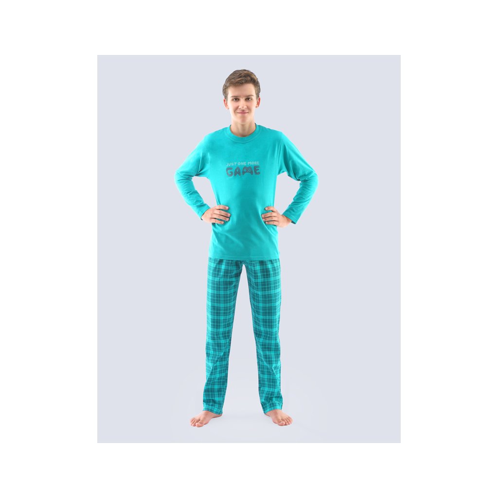 GINA dětské pyžamo dlouhé chlapecké, šité, s potiskem Pyžama 2021 69001P - šalvěj lahvová 140/146