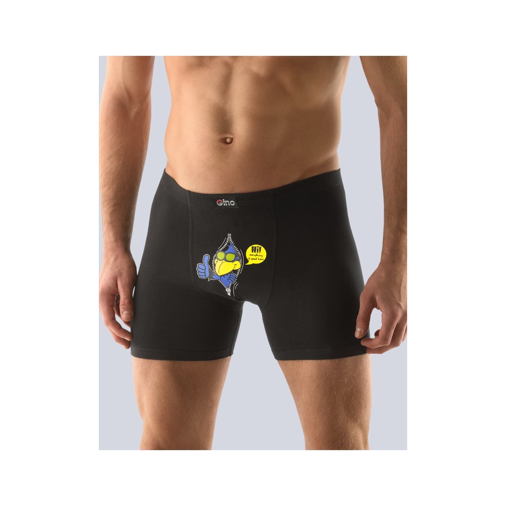 boxerky delší nohavička, šité, s potiskem značky GINA, kód 74081. Barva: černá pampelišková, Velikost: 50/52, Složení: 92% Bavlna 8% ElastanBoxerky s delší nohavičkou, pánské šité prádlo. V pasovém kraji je zašitá širší pruženka. Nohavičky jsou začištěné podehnutím. Zadní díl je členěný sedlem se dvěma švy. Boxerky jsou jednobarevné. Na předním díle je umístěn solitér.Materiál je vyroben z bavlny, která je doplněna elastanem. Úplet je vhodný pro všechny, kteří hledají přírodní materiály. Elastan přidává materiálu pružnost a zlepšuje jeho tvarovou stálost. Prádlo z tohoto materiálu je vhodné pro každodenní nošení.Kolekce Funny přináší v pánském prádle veselé obrázky.. Kolekce: Funny collectionDoplňkové parametry