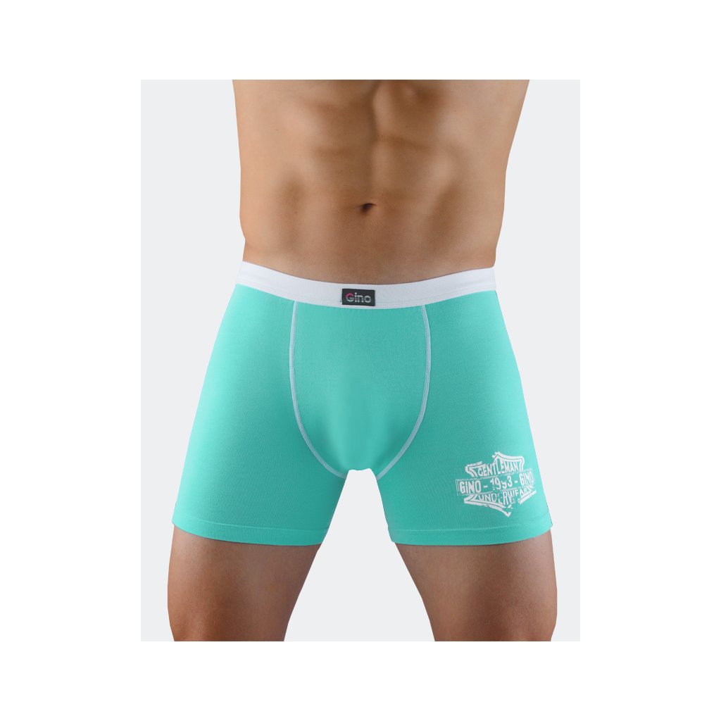 boxerky delší nohavička, šité, s potiskem značky GINA, kód 74071. Barva: tyrkysová bílá, Velikost: 54/56, Složení: 45% Bavlna 45% Modal 10% ElastanBoxerky s delší nohavičkou, pánské šité prádlo. V pasovém kraji je zašitá širší pruženka. Nohavičky jsou začištěné podehnutím. Zadní díl je členěný sedlem se dvěma švy. Boxerky mají kontrastní pasový lem se všitou pruženkou. Na nohavici je velký solitér.Materiál je vyroben z modelového vlákna, které je doplněno bavlnou a elastanem. Úplet je vhodný pro všechny, kteří hledají přírodní materiály. Elastan přidává materiálu pružnost a zlepšuje jeho tvarovou stálost. Prádlo z tohoto materiálu je vhodné pro každodenní nošení.. Kolekce: Max IIIDoplňkové parametry
