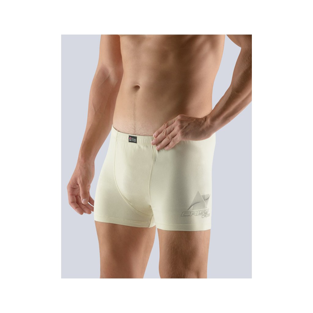 boxerky kratší nohaviča, kratší nohavička, šité, s potiskem značky GINA, kód 73083. Barva: šedobílá okrová, Velikost: 46/48, Složení: 45% Bavlna 45% Modal 10% ElastanBoxerky s kratší nohavičkou, pánské šité prádlo. V pasovém kraji je zašitá širší pruženka. Nohavičky jsou začištěné podehnutím. Zadní díl je hladký. Boxerky jsou jednobarevné. Na nohavici je umístěn solitér.Materiál je vyroben z modelového vlákna, které je doplněno bavlnou a elastanem. Úplet je vhodný pro všechny, kteří hledají přírodní materiály. Elastan přidává materiálu pružnost a zlepšuje jeho tvarovou stálost. Prádlo z tohoto materiálu je vhodné pro každodenní nošení..