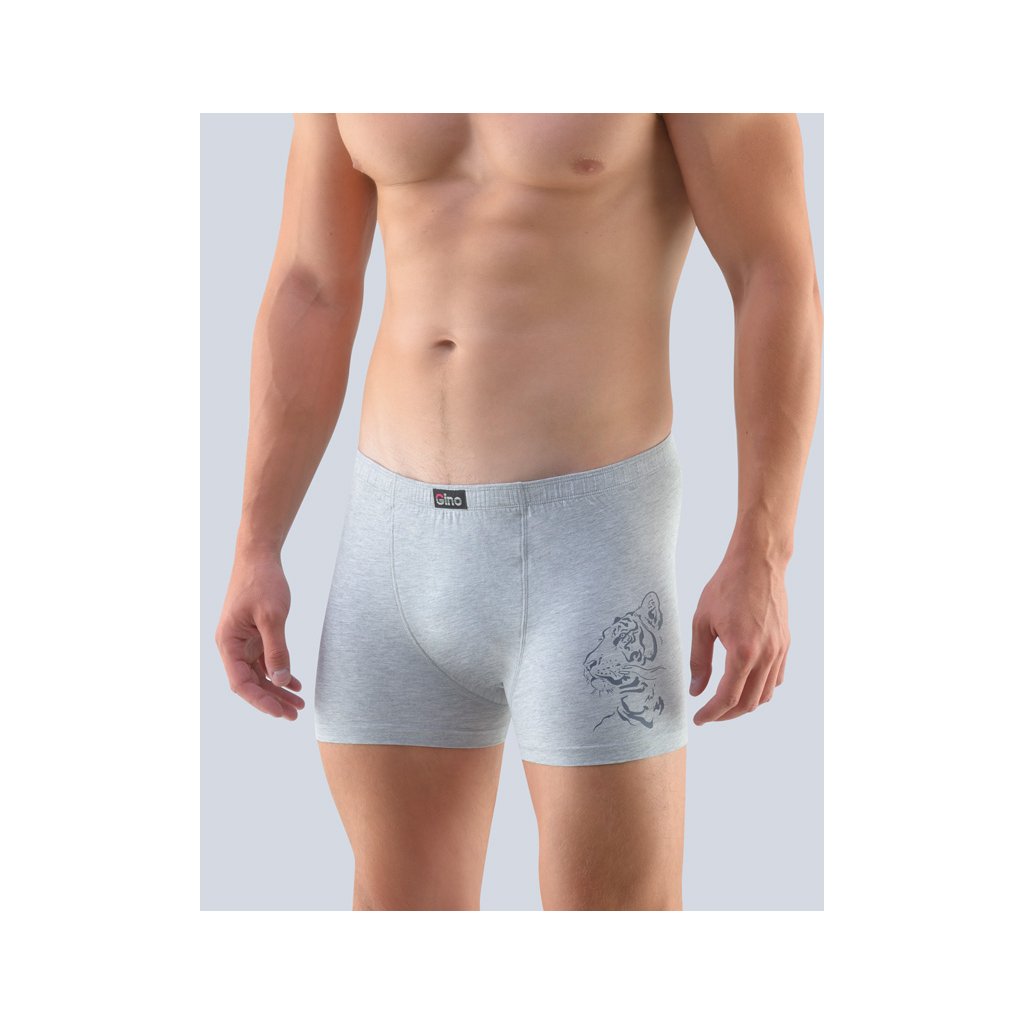 boxerky kratší nohavička, šité, s potiskem značky GINA, kód 73100. Barva: petrolejová černá, Velikost: 50/52, Složení: 92% Bavlna 8% ElastanBoxerky s kratší nohavičkou, pánské šité prádlo. V pasovém kraji je zašitá širší pruženka. Nohavičky jsou začištěné podehnutím. Zadní díl je hladký. Boxerky jsou jednobarevné. Na nohavici je umístěn větší solitér. (tygr)Materiál je vyroben z bavlny, která je doplněna elastanem. Úplet je vhodný pro všechny, kteří hledají přírodní materiály. Elastan přidává materiálu pružnost a zlepšuje jeho tvarovou stálost. Prádlo z tohoto materiálu je vhodné pro každodenní nošení..Doplňkové parametry