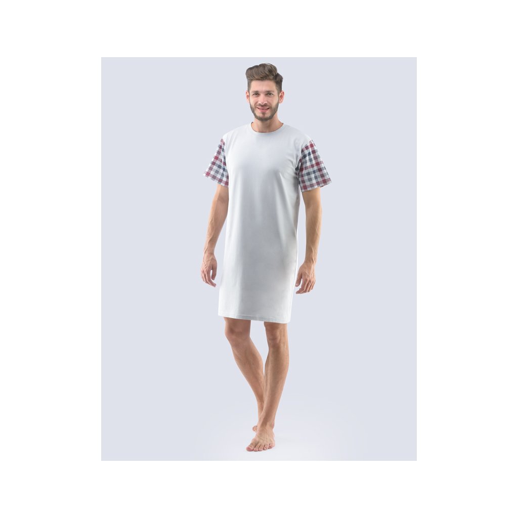 GINA pánské košile noční pánská krátký rukáv, šité, s potiskem Pyžama 2021 79120P - sv. šedá mahagon L