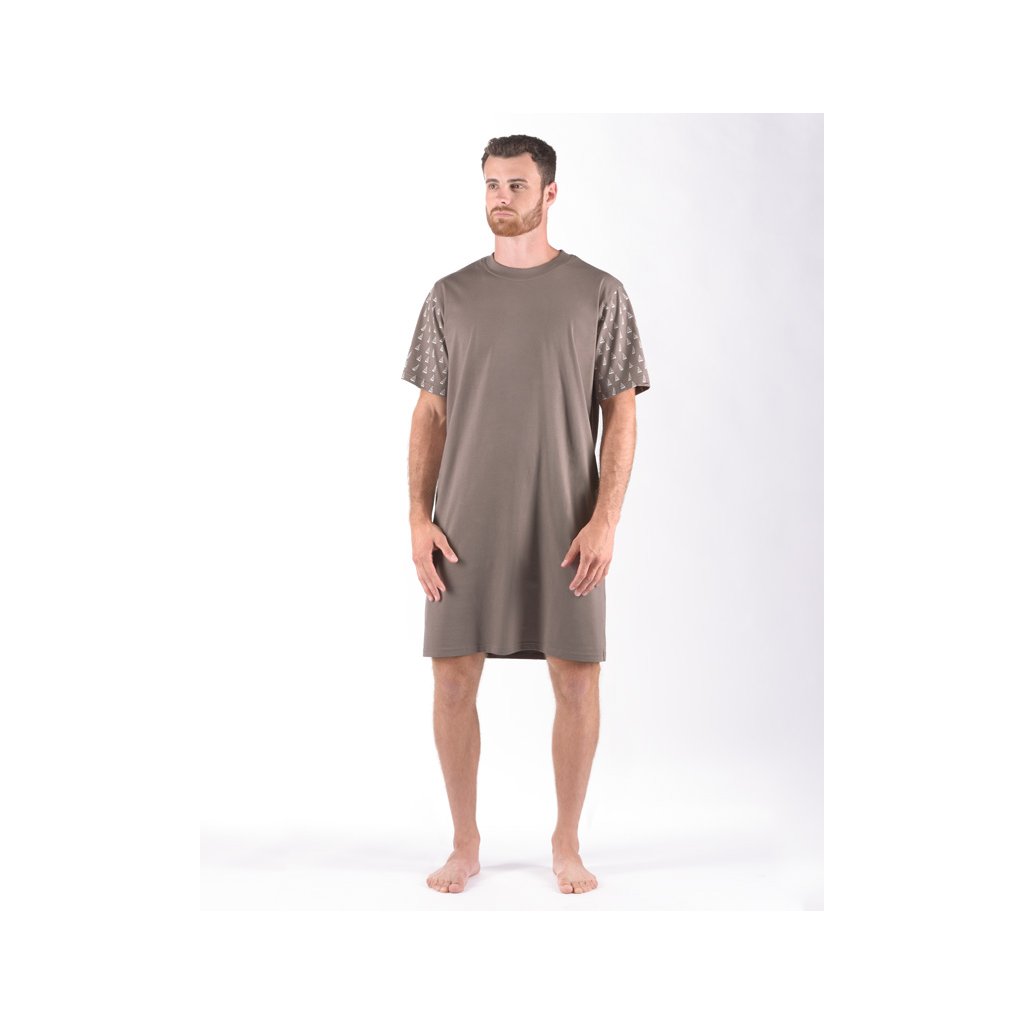 GINA pánské košile noční pánská krátký rukáv, šité, s potiskem Pyžama 2024 79176P - káva šedobílá L