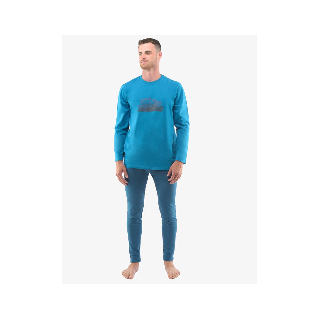 GINA pánské pyžamo dlouhé pánské, šité, s potiskem Pyžama 2022 79127P - měsíc petrolejová L