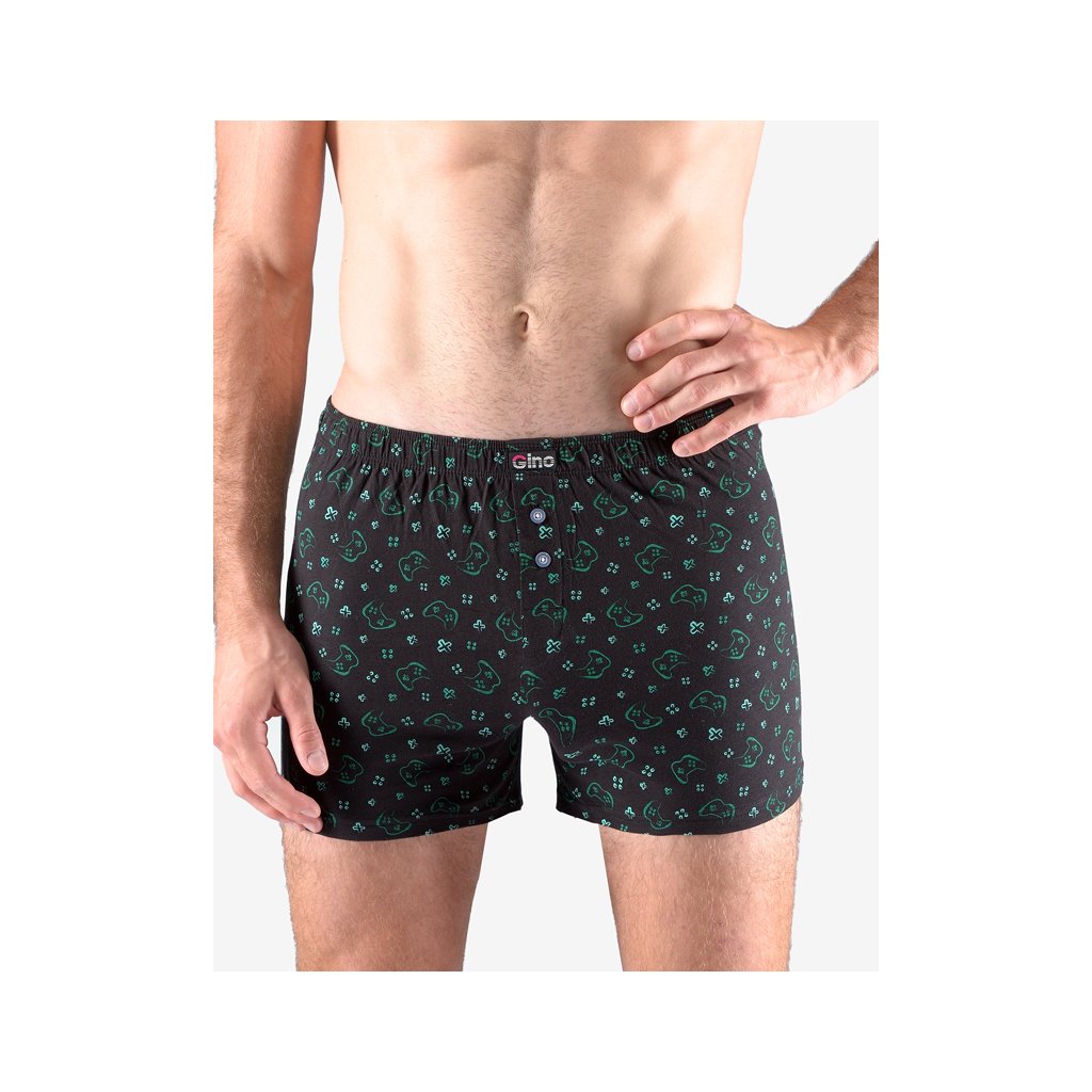 trenky volné, šité, s potiskem značky GINA, kód 75180. Barva: lékořice tm. tyrkysová, Velikost: 54/56, Složení: 100% bavlnaVolné trenky ze 100% bavlny jsou ideální volbou pro každého, kdo má rád klasický pohodlný střih volných trenek a přírodní materiály. Tento kousek má moderní vzor a v pase nášivku s logem Gino. Dobře padnoucí pasová guma a rozparek na dva knoflíky jsou samozřejmostí. Tenhle kousek nesmí chybět žádnému gamerovi!.Doplňkové parametry