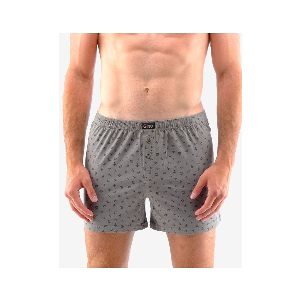 trenky volné, šité, s potiskem značky GINA, kód 75187. Barva: šedá černá, Velikost: 58/60, Složení: 100% bavlnaVolné trenky ze 100% bavlny jsou ideální volbou pro každého, kdo má rád klasický pohodlný střih volných trenek a přírodní materiály. Tento kousek má moderní vzor a v pase nášivku s logem Gino. Dobře padnoucí pasová guma a rozparek na dva knoflíky jsou samozřejmostí. Tenhle super kousek vám prostě nemůže chybět!.Doplňkové parametry