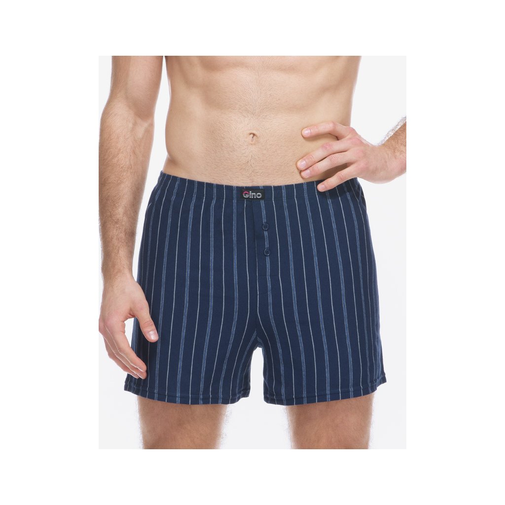 trenky volné, šité značky GINA, kód 75209. Barva: lékořice atlantic, Velikost: 50/52, Složení: 100% bavlnaVolné trenky ze 100% bavlny jsou ideální volbou pro každého, kdo má rád klasický pohodlný střih volných trenek a přírodní materiály. Tento kousek má vzor decentních proužků a v pase nášivku s logem Gino. Dobře padnoucí pasová guma a rozparek na dva knoflíky jsou samozřejmostí..Doplňkové parametry