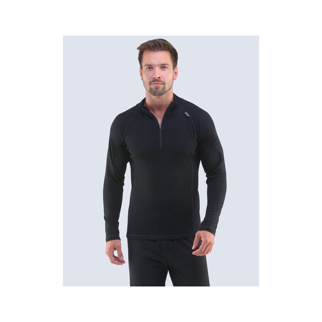 GINA pánské triko se zipem s dlouhým rukávem pánské, dlouhý rukáv, šité, jednobarevné Merino Bamboo 88016P - černá L