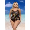 Černé jednodílné plavky se zapínají na zádech a hodí se i pro plnoštíhlé ženy.