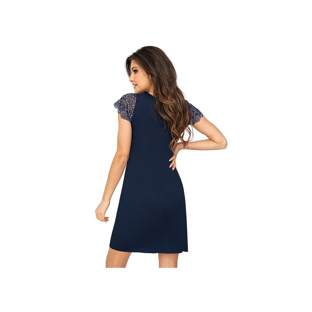 Noční košilka s krátkým krajkovaným rukávem, výstřih do V zdobený krajkou, podšití pod prsy Složení: 90% viskóza, 5% elastan, 5% polyamidDoplňkové parametry