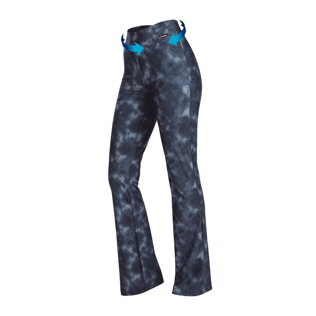 Oblíbený střih funkčních legín do zvonu s širším pružným pasem. Materiál je pružný, rychleschnoucí a poskytuje maximální komfort při nošení. Praktické a stylově vypadající legíny v nadčasovém potisku pro sport a volný čas. 77% Polyester + 23% Elastan modrá batika S, M, LDoplňkové parametry