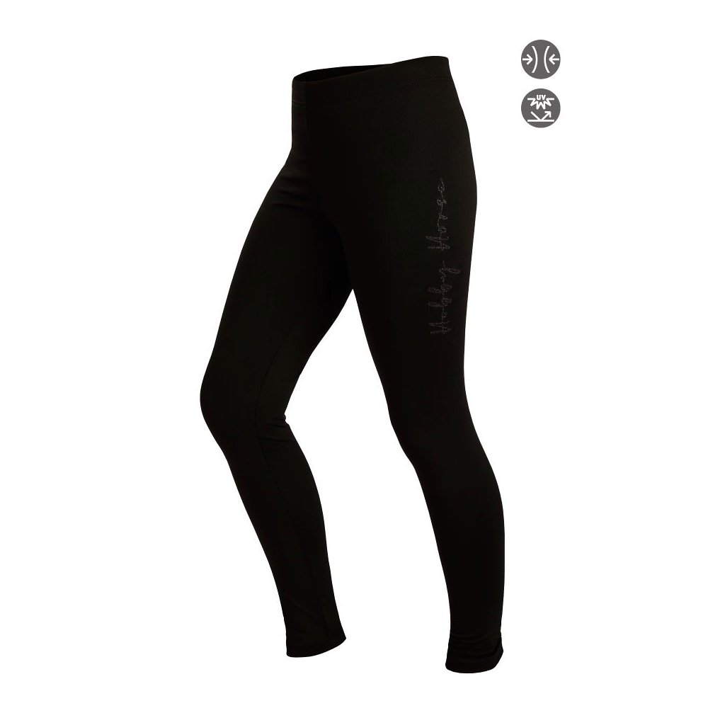Pohodlný pružný pas s gumou. Ozdobný třpytivý potisk na boku. Materiál je pružný, rychleschnoucí a poskytuje maximální komfort při nošení. Legíny pro sport a volný čas. 90% Polyamid + 10% Elastan/ Lycra Sport 901 černá 134, 140, 146