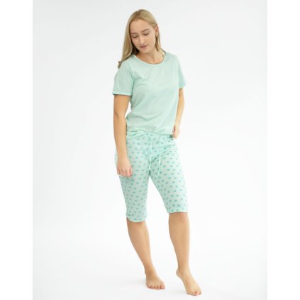 GINA dámské pyžamo ¾ dámské, 3/4 kalhoty, šité, s potiskem Pyžama 2022 19140P - aqua akvamarín L