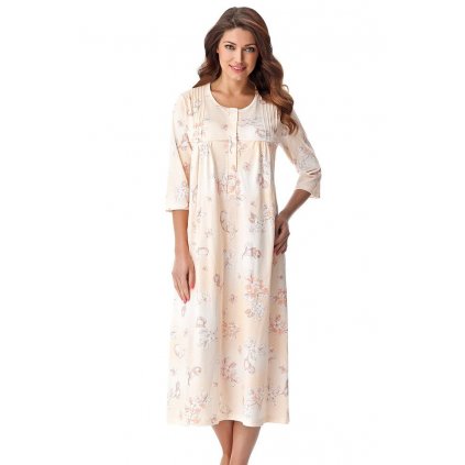 Dlouhá bavlněná noční košile s knoflíčky Lea lososová