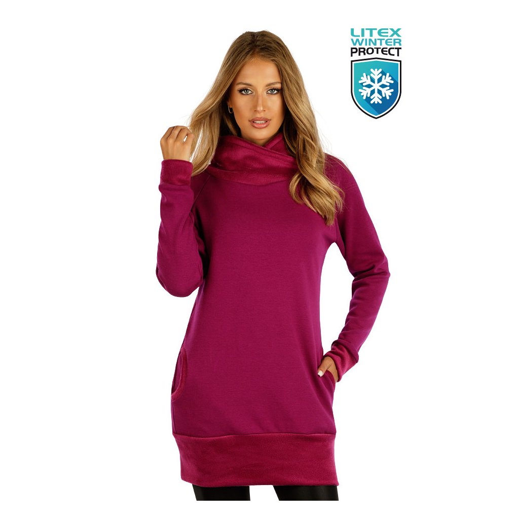 Překřížený stoják s příjemným vnitřním počesem. Praktické boční kapsy. Délka rukávů a šatů do manžety. Mikinový úplet s vnitřním vyšším počesem je velmi teplý a příjemný na těle. Díky bavlně a elastanu je krásně měkký a pružný. Délka šatů cca 80 cm. 56% Polyester + 40% Bavlna + 4% Elastan 323 vínová S, M, L, XLDoplňkové parametry