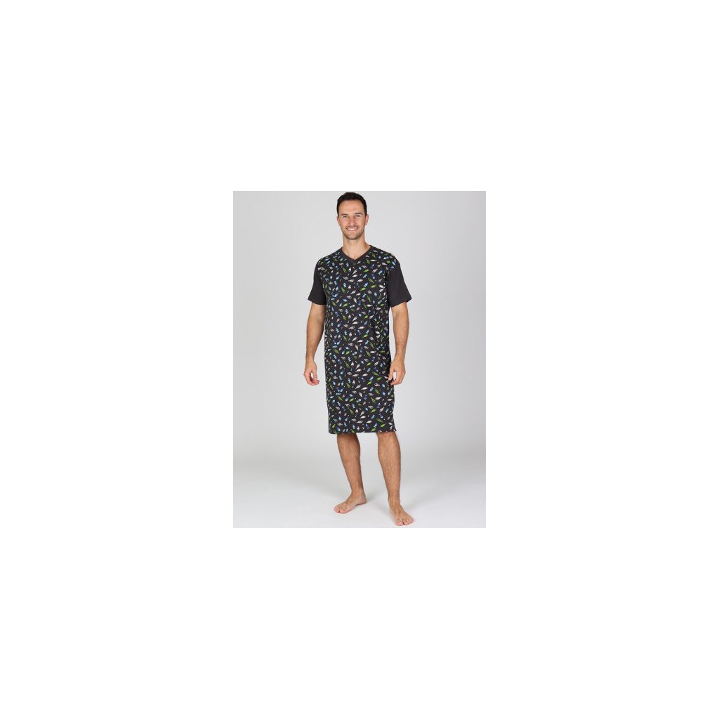 Pánská noční košile P PONGO s potiskem ryb potěší každého rybáře. Krátký rukáv, délka nad kolena a příjemný materiál zajistí při spánku potřebné pohodlí. Noční košile skvěle poslouží i jako dárek.